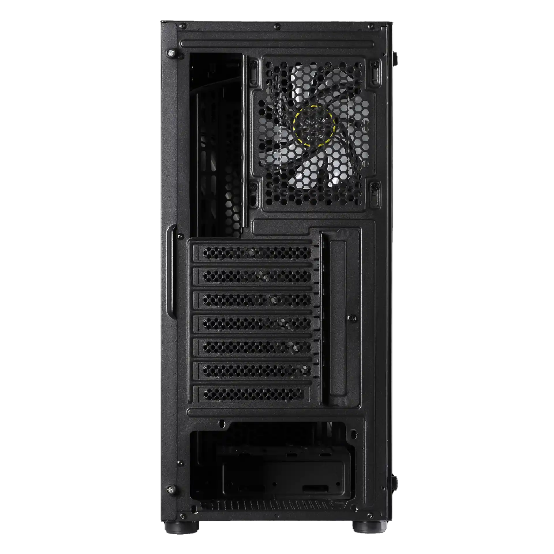 | Podržani ventilatori: | Gore: 2 x 120mm Prednje: 2 x 120mm, 2 x 140mm Zadnje: 1 x 120mm *Ventilatori na prednjoj ploči mogu se montirati samo iza prednje ploče. *Kavez za HDD mora biti uklonjen prilikom instalacije donjeg prednjeg panelnog ventilatora. |